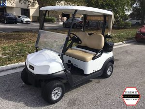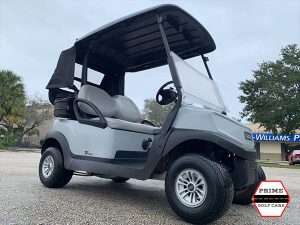 Most Club Car golf carts are electric, especially ones we have for sale and for rental, as they are faster, quieter, and better for the environment. Club Car even has a special, high frequency charger known as E.R.I.C. – efficient, reliable, intelligent, and connected. This charger has status lights and various alerts that can tell drivers that the cart is charging, the state of the charge cycle, and any faults. It also shuts off when the batteries are fully charged, but will continue to monitor the battery pack and deliver power as needed. However, some drivers prefer gas golf carts, especially if they are using them in areas where an outlet isn’t readily available, such as a campground or construction site. Gas Club Car carts can typically travel about 12-15mph, while electric carts can reach speeds of around 16-20mph.